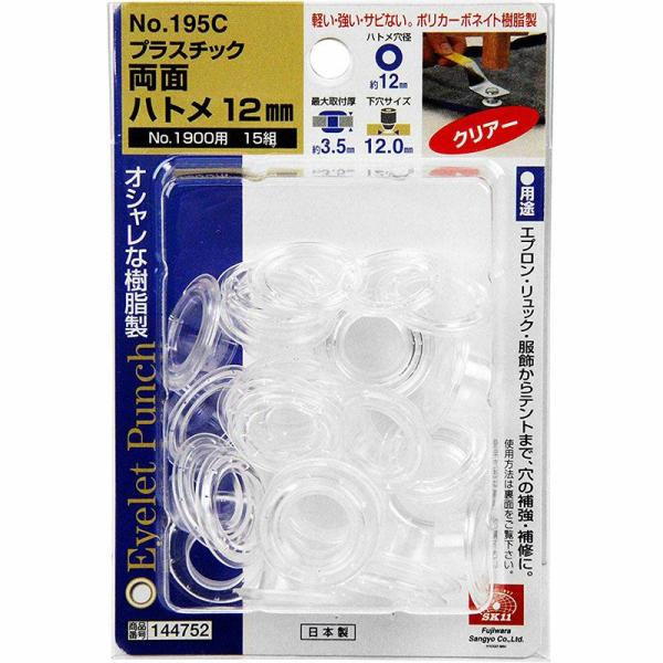SK11 プラスチック 両面ハトメ玉 ハトメ穴径約12mm 透明 15組入 No.195C メール便対応(4個まで) 4977292144759