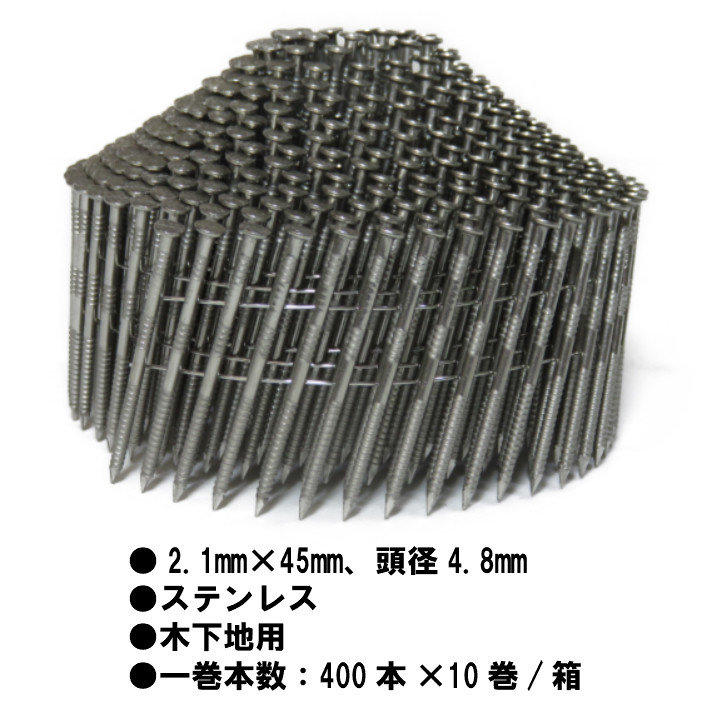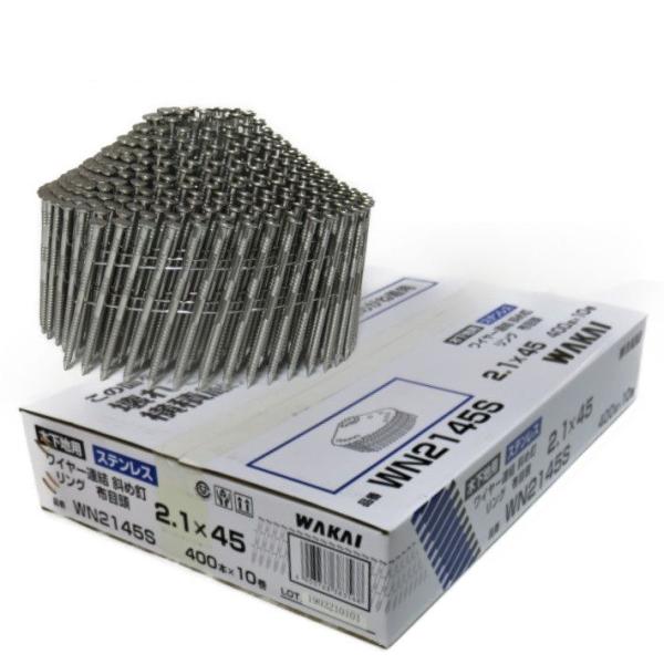 WAKAI ステンレス ワイヤー連結 斜め釘 リング 布目頭 2.1×45mm WN2145S【若井産業 ロール釘 ワイヤー連結 木下地用】【100サイズ】