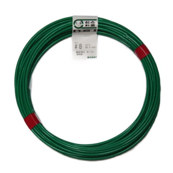 WAKAI 針金 カラー線 ♯8(約4.0) 1kg巻(約15m) 290801G【若井産業 番線 被覆 緑】