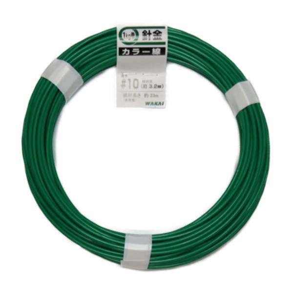 WAKAI 針金 カラー線 ♯10(約3.2) 1kg巻(約23m) 201001G【若井産業 番線 被覆 緑】