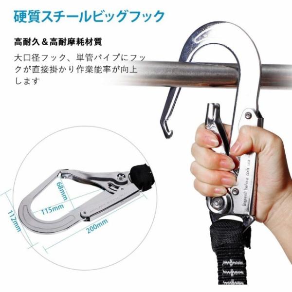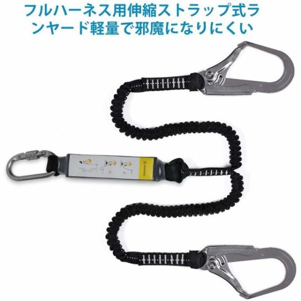 【新規格適合】フルハーネス用ランヤード 伸縮式ランヤード フルハーネスシートベルト用 シングル 2丁掛け 安全ベルト 安全ロープ ランヤード 補助用
