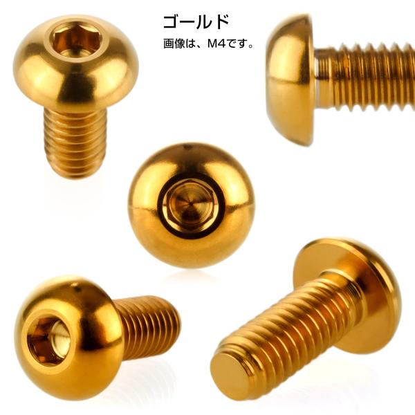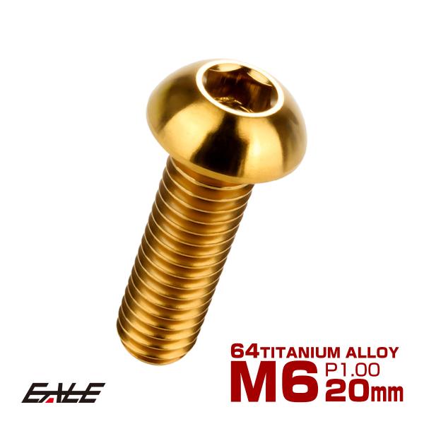 チタンボルト M6×20mm P1.0 ボタンボルト 六角穴 ゴールド JA914