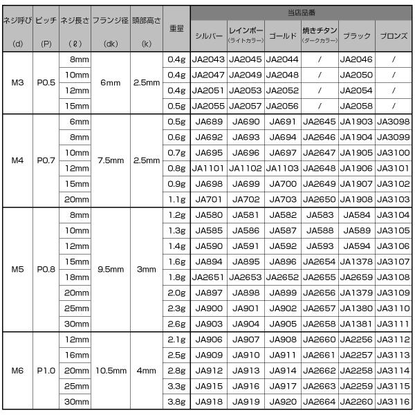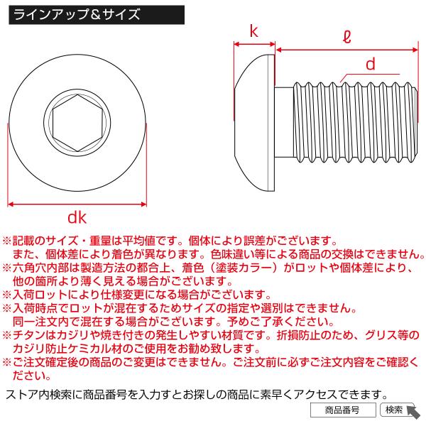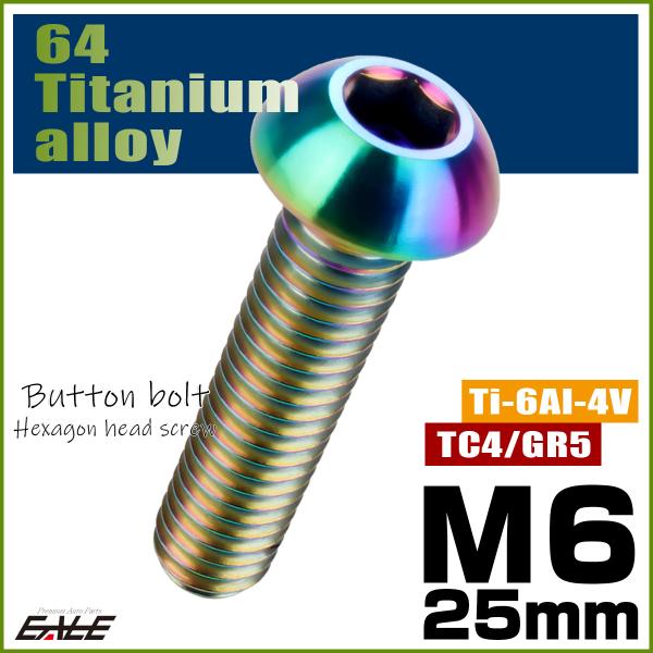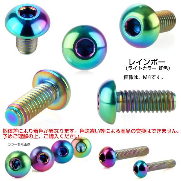 チタンボルト M6×25mm P1.0 ボタンボルト 六角穴 レインボー 虹色 ライトカラー JA916
