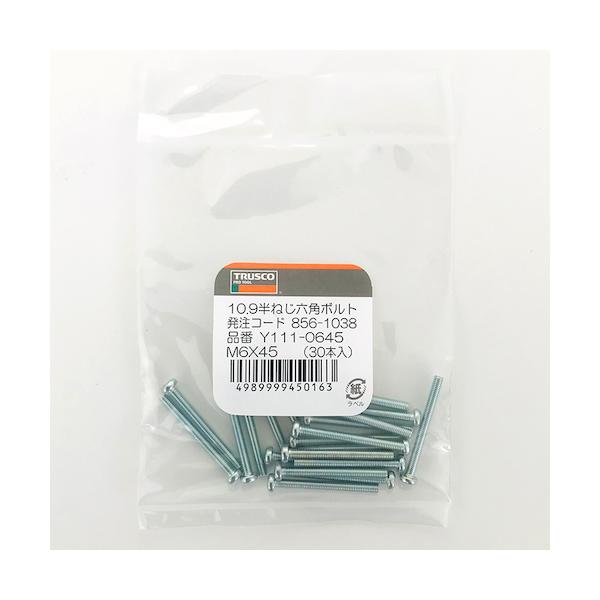TRUSCO 六角ボルト ユニクロ 全ネジ M8×30 10本入 少量パック ▼379-3130 Y801-0830 1袋