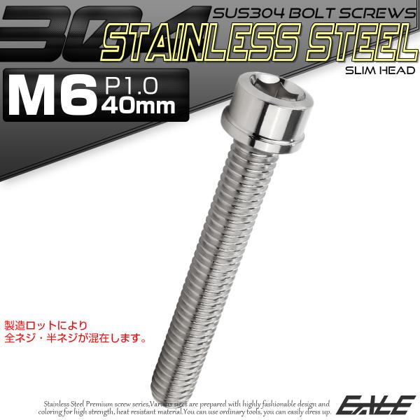 SUS304 キャップボルト M6×40mm P1.0 六角穴付きボルト スリムヘッド シルバー ステンレス製 TB0195
