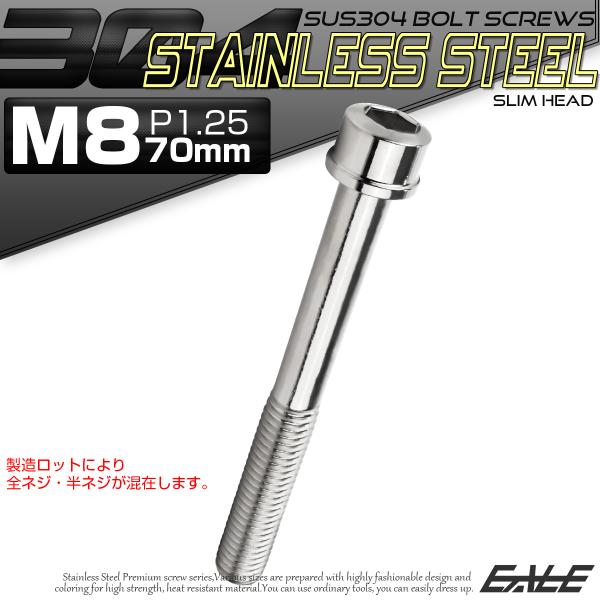 SUS304 キャップボルト M8×70mm P1.25 六角穴付きボルト スリムヘッド シルバー ステンレス製 TB0222
