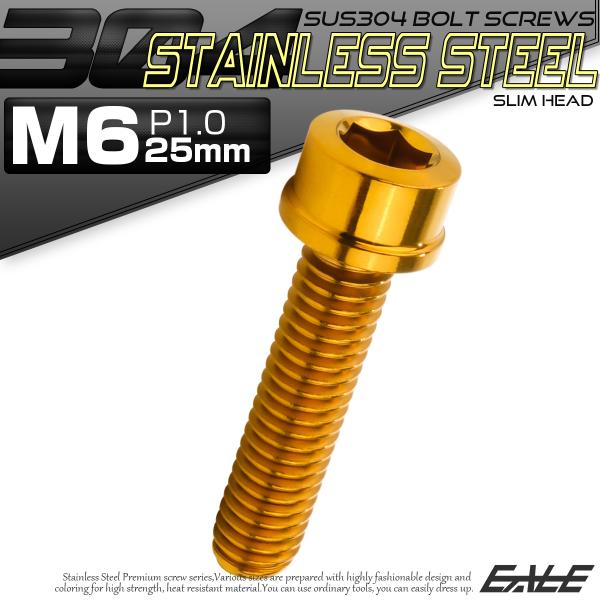 SUS304 キャップボルト M6×25mm P1.0 六角穴付きボルト スリムヘッド ゴールド ステンレス製 TB1032