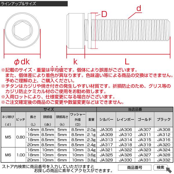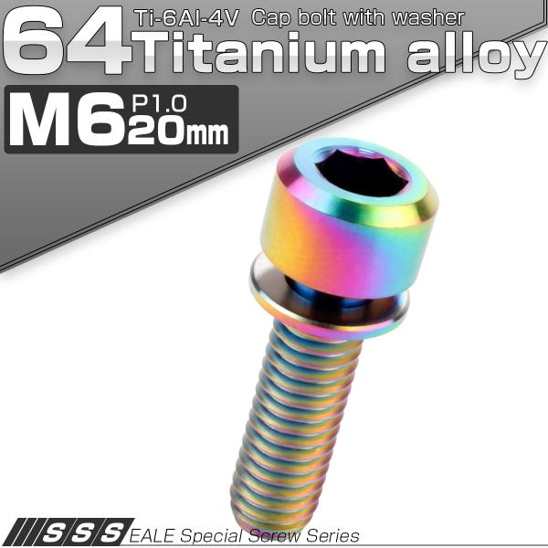 チタンボルト M6 20mm P1.0 キャップボルト 六角穴 ワッシャー付き 虹色 焼きチタン色 JA330