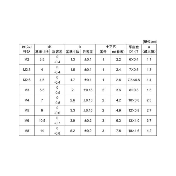 鉄/ニッケル (+)ナベセムス [P=1] M2 (太さ=2mm)×長さ=4mm 【 バラ売り : 10本入り 】