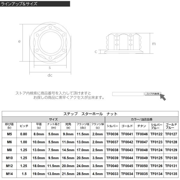SUS304ステンレス M10 P=1.25 ステップ スターホール ナット 六角 フランジ付 チタン TF0049