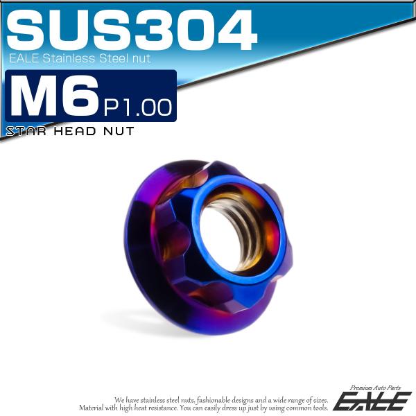 フランジナット スターヘッド M6 P1.0 セレート付き デザインナット SUSステンレス フランジ付き 六角ナット 焼きチタンカラー TF0194