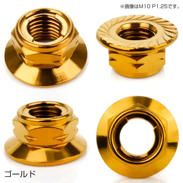 フリクションリングナット M12 P1.25 フランジ付き 六角ナット ゆるみ止めナット ゴールド TF0220