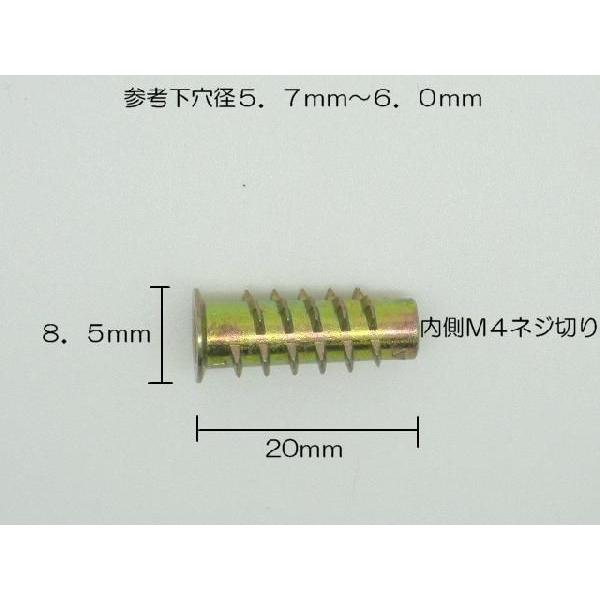 木工用 埋め込み ムラコシ 鬼目ナット Dタイプ M4×20mm ねじ込みタイプ DIY連結金具 組み立てナット ジョイントナット