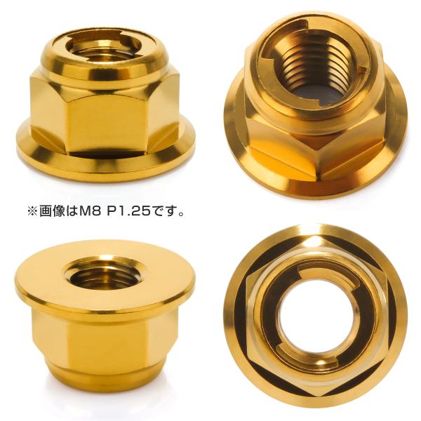 チタンナット M8 P1.25 フリクションリングナット フランジ付き 六角ナット ゆるみ止めナット ゴールド JA1646