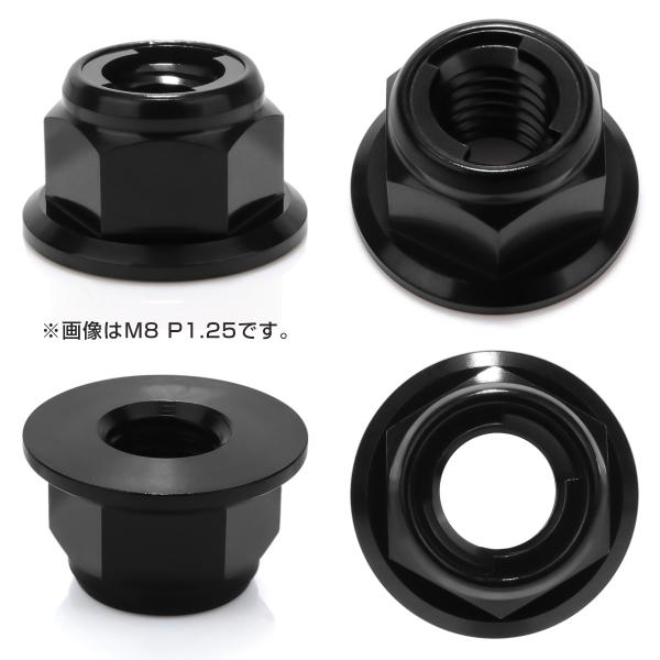 チタンナット M8 P1.25 フリクションリングナット フランジ付き 六角ナット ゆるみ止めナット ブラック JA1649