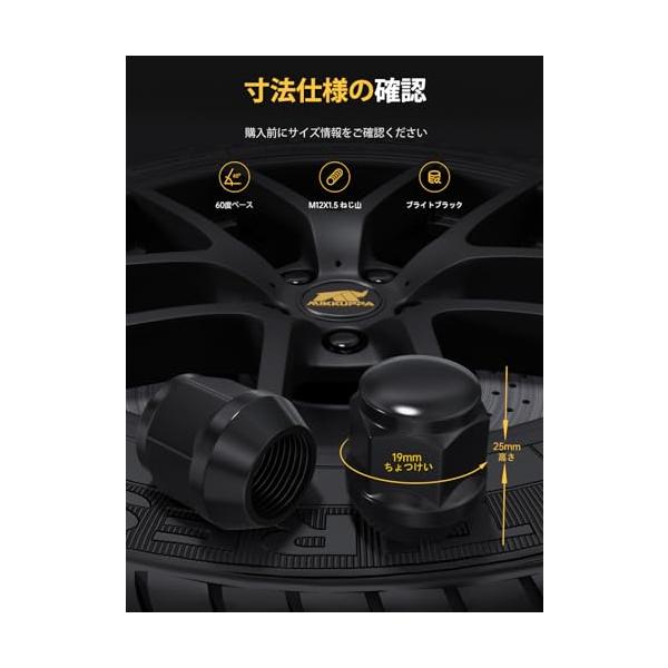MIKKUPPA ホイールナット M12×P1.5 三菱・ダイハツ・トヨタ・マツダ用 テーパ一座 ナット ブラック 19HEX 長さ25 mm