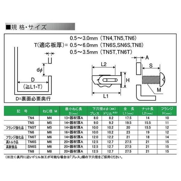 ワカイ 金属薄鋼板用ターンナット TN-4 0.5〜3.0mm厚用 10個 手の入らない場所に外からセット出来るナット ネコポス可 在庫