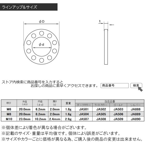 チタンワッシャーM6 外径20mm 平ワッシャー ゴールド フラットワッシャー ホール JA503