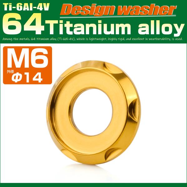 チタンワッシャー M6 外径14mm 座面枠付き デザインワッシャー ゴールド JA1666