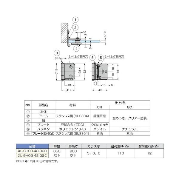 スガツネ ステンレス鋼製ガラス丁番XL-GH03-48-0型インセット扉用 XL-GH03-48-0CR(170-098-651) 1