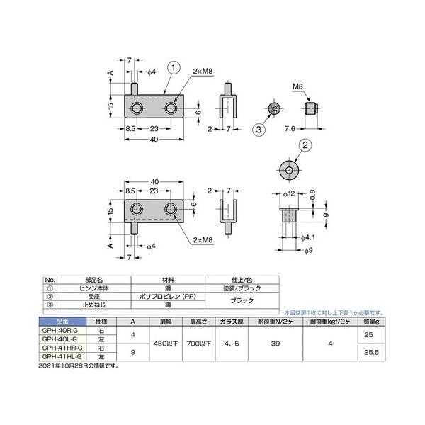 スガツネ 軸吊ガラス丁番GPH型インセット扉用 GPH-41HL-G(170-080-031) 1