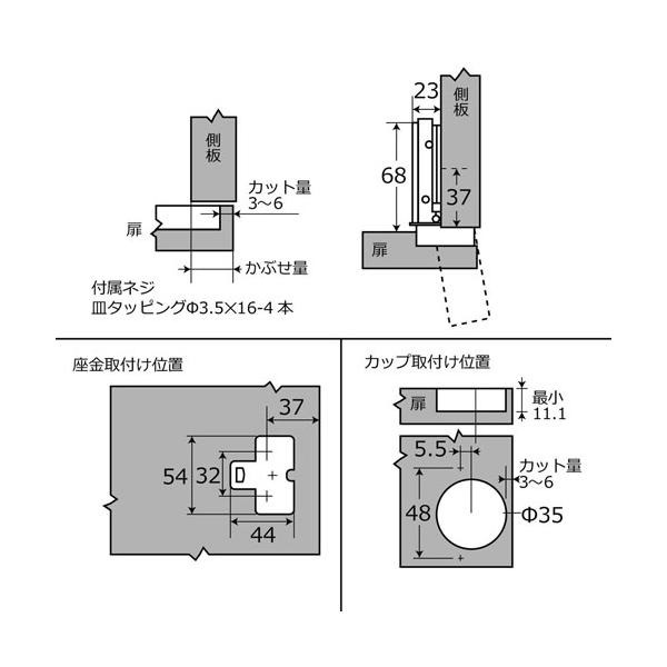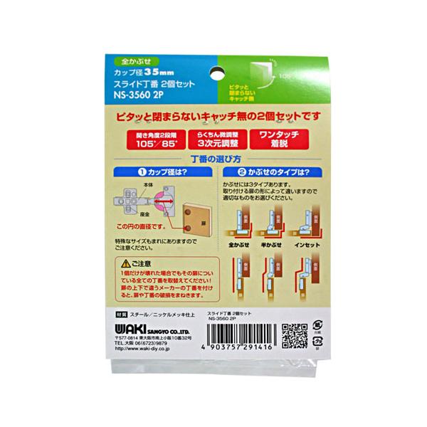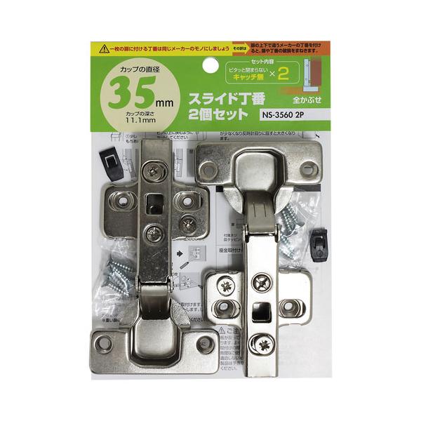 和気産業 スライド丁番 キャッチ無し 全かぶせ カップの径35mm NS-3560-2P