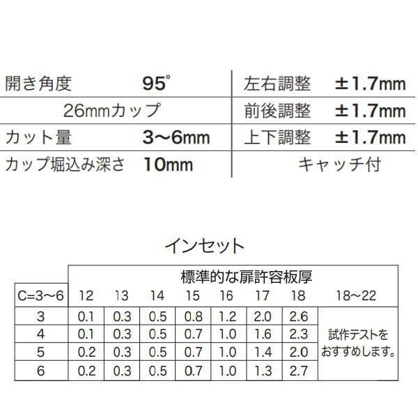 ハーフェレ スライド丁番 26mmカップ インセット キャッチ付 バラ H18028