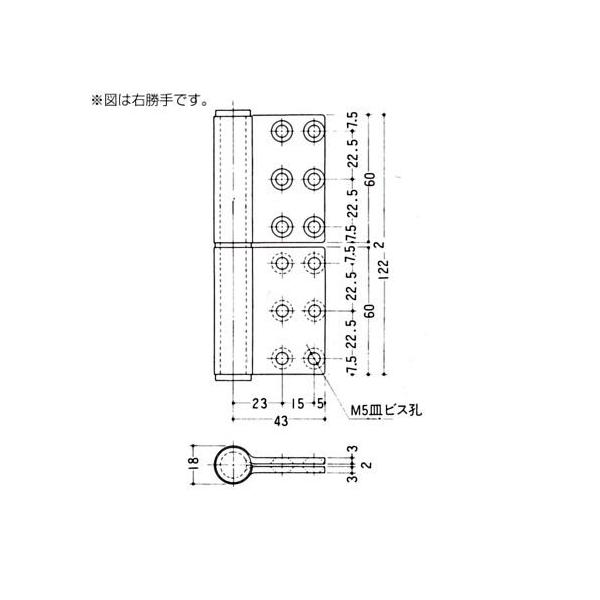 クマモト ST面付旗丁番(ST芯) HL 3×127mm K-34A-127 L 1枚