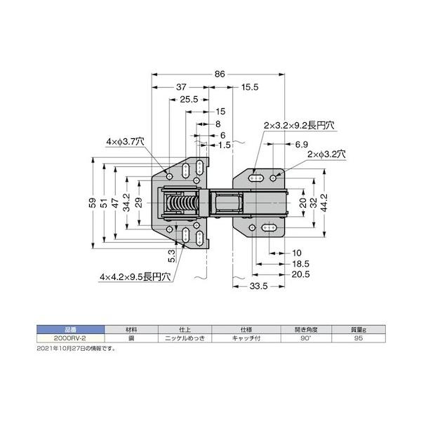 スガツネ キャッチ付面付丁番 2000RV-2(170-090-034) 1