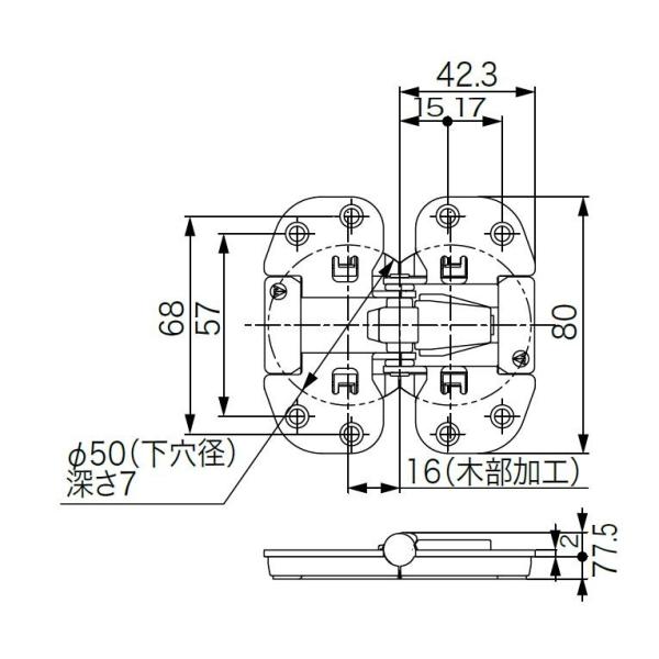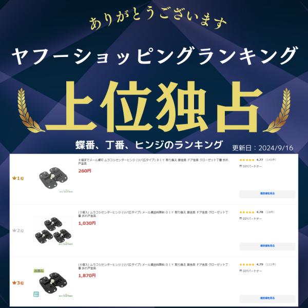 9個まで ムラコシセンターヒンジ (ツバ広タイプ) DIY 取り換え 扉金具 ドア金具 クローゼット丁番 折れ戸金具