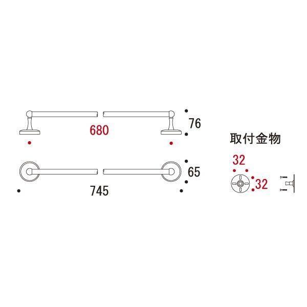ゴーリキアイランド 640032 真鍮製タオルバー スタンダードシリーズ 金色 680ミリタイプ 真鍮 タオル掛け タオルハンガー