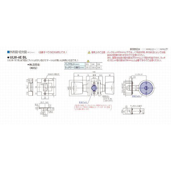 GOAL ゴール ULW-4E BS 89mm 取付可能扉厚 25mm以上-30mm未満 ユニロック 円筒錠 BL型 間仕切錠 薄扉用 ULW4EBS