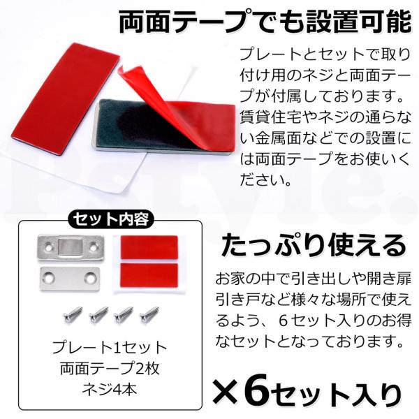 Pstyle. 蝶番 マグネット キャッチ 磁石 両面テープ付き 金具 6セット PST-062