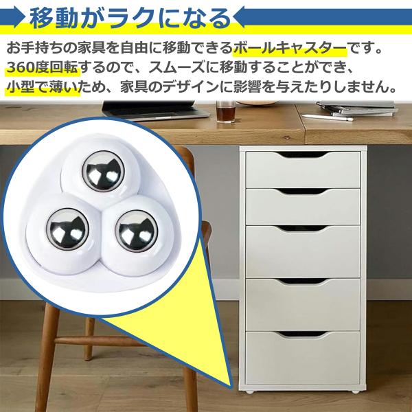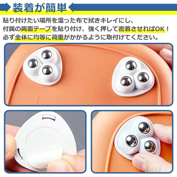 ボールキャスター 4個セット粘着テープ式 360度回転 3輪 耐荷重 約30kg 簡単 貼るだけ 両面 小型 ミニ 収納 グッズ ケース ボックス