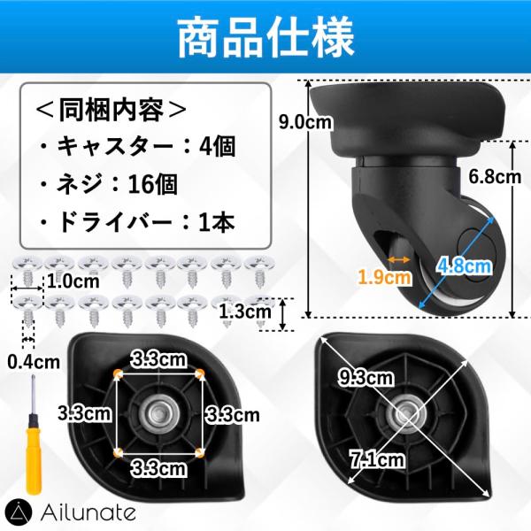 スーツケース キャスター 交換 タイヤ キット セット 車輪 修理 キャリーケース 取り替え W013 4個セット