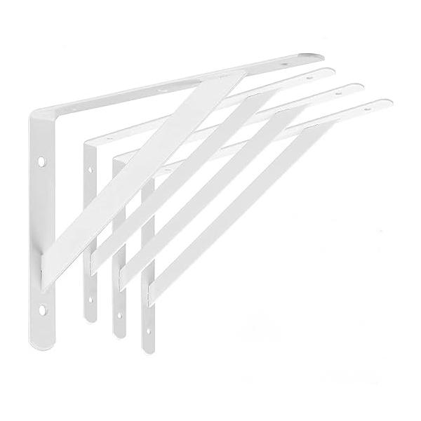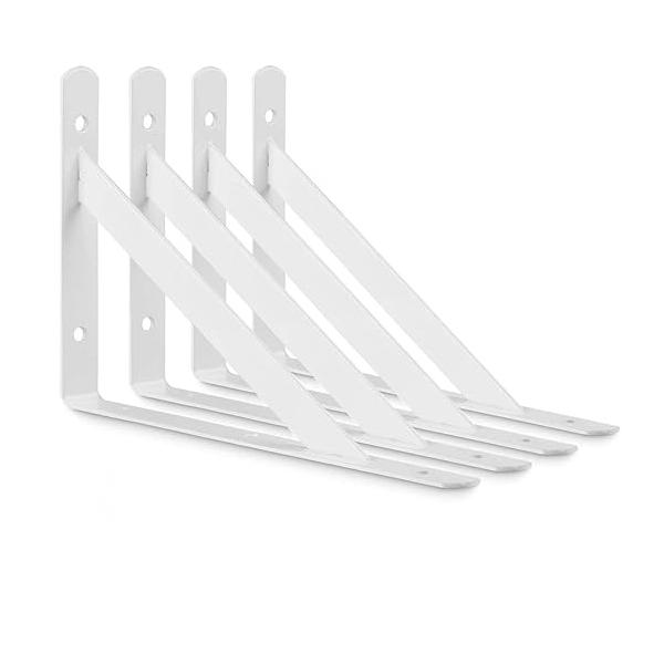 ねじ付き 棚受け 金具 L字型 4本セット DIY 収納 ディスプレイ などに (200mm×120mm)白