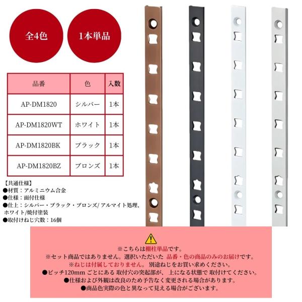 棚柱 可動棚 DIY 壁面収納 スガツネ AP-DM1820 1820mm 1本 全4色 アルミ製 棚柱レール クローゼット キッチン 棚金具