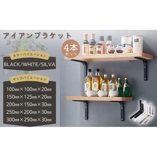 棚受け金具300mm×250mm×30mm ホワイト 4本セット アイアンブランケット【付属品】ボードアンカー8個、ネジ大小16個 取り付け説明書