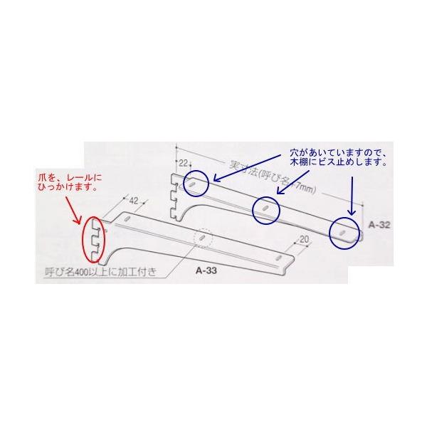 ロイヤル白 A-32、33 木棚板専用 ウッドブラケット 左右セット Aホワイト 呼び名250(実寸法257ミリ)