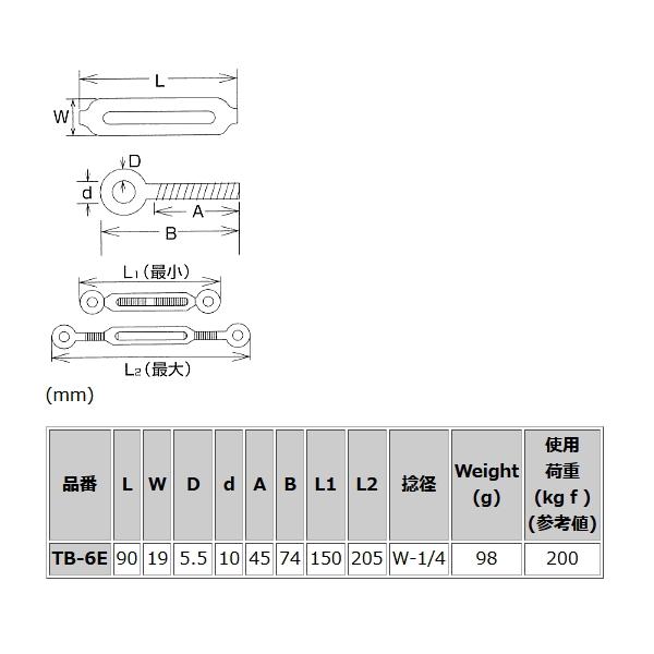 ステンレス 枠式ターンバックル(アイ&アイ)最大205ミリ TB-6E メール便可