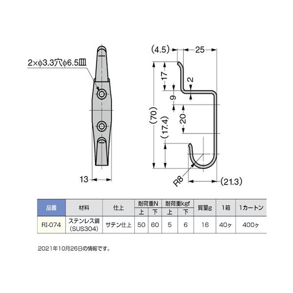 SUGATSUNE (110020006) RI-074 ステンレス鋼製フック ▼254-0533 RI-074 1個