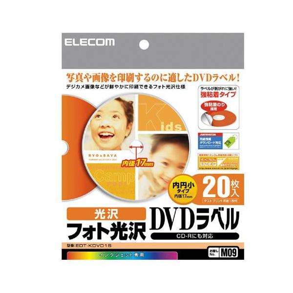 エレコム DVDラベル フォト光沢紙 強粘着 20枚 ホワイト 内径17mm EDT-KDVD1S