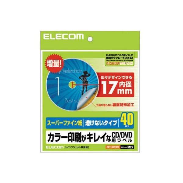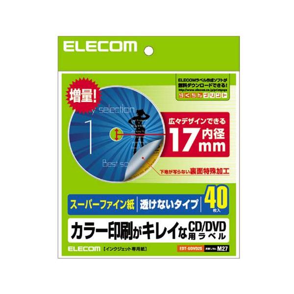 エレコム CD/DVDラベル スーパーファイン紙 40枚 ホワイト 内円小タイプ 40枚入 EDT-UDVD2S