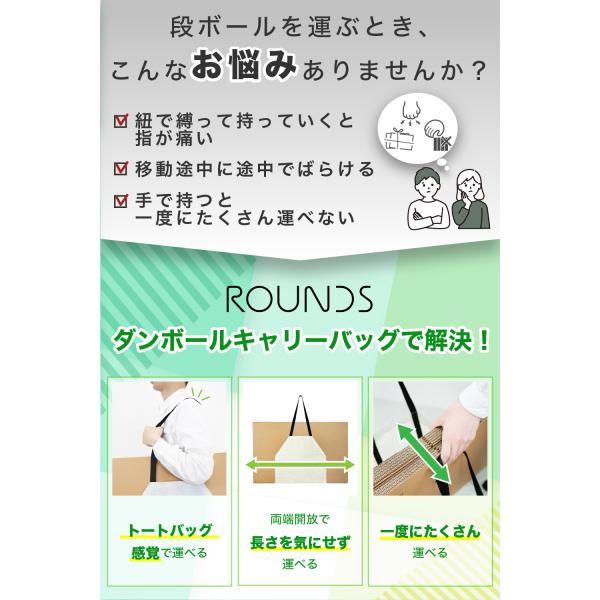 ROUNDS ダンボールキャリーバッグ まとめて段ボールを運べる ダンボールストッカーとしても使える