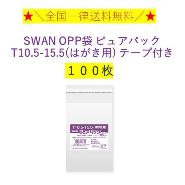 SWAN OPP袋 ピュアパック T10.5-15.5(はがき用) テープ付き 100枚 送料無料