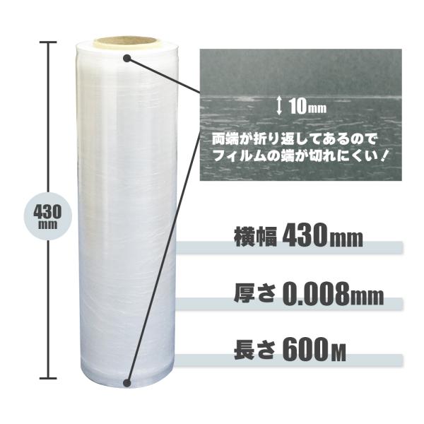 ストレッチフィルム エッジ強化タイプ 透明 450mm幅x600m 8μ 6本 STR-450-08E サンキョウプラテック