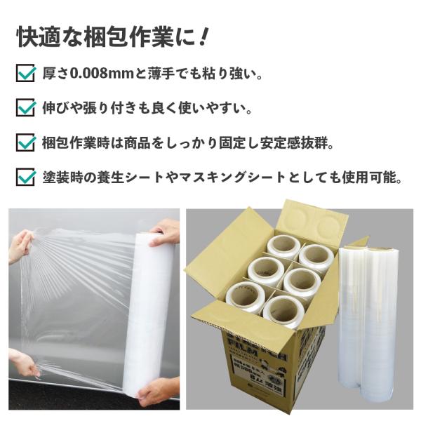 ストレッチフィルム 透明 500mm幅x600m 8μ 6本 STR-500-08 サンキョウプラテック