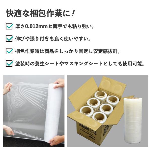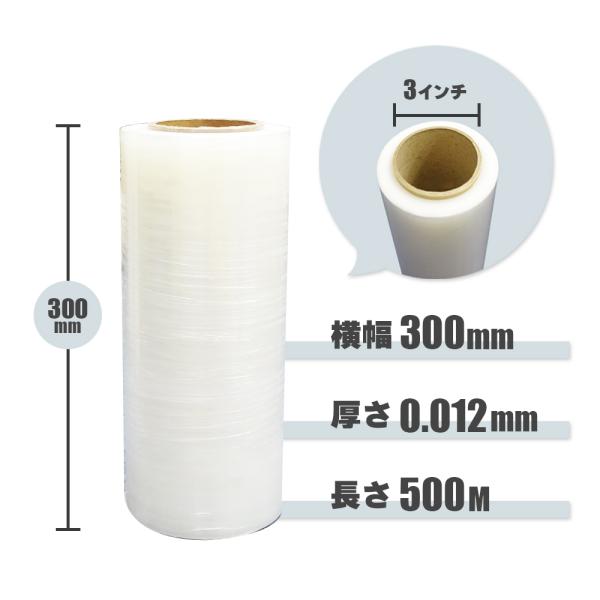ストレッチフィルム 透明 300mm幅x500m 12μ 6本 STR-300-12 サンキョウプラテック