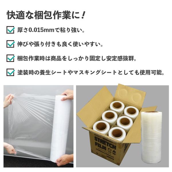 ストレッチフィルム 透明 300mm幅x500m 15μ 6本 STR-300-15 サンキョウプラテック