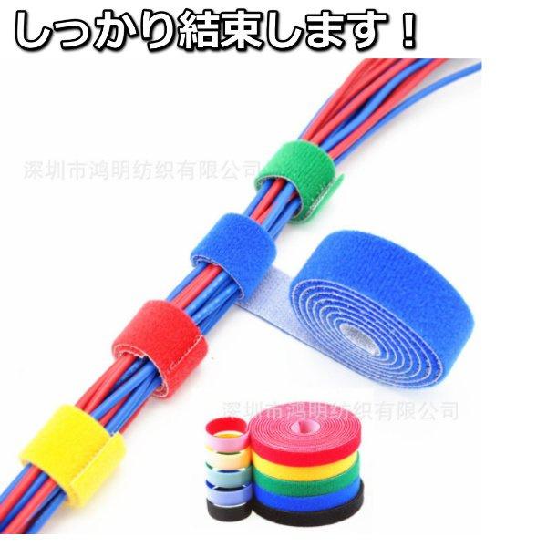 マジック結束バンド 10mmタイプ マジックテープ 両面 黒 1m ケーブルまとめ 配線 コード固定 纏める 周辺機器 パソコン 植物